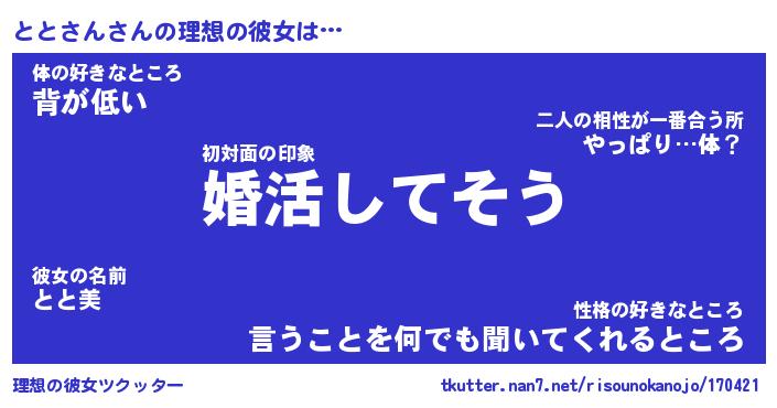 | 意味不明あだ名 | 『ペロリンととさん』『永久保存ととさん』 |