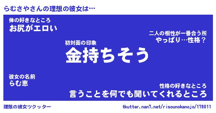 | ヘコむあだ名 | 『らむにゅー』『酢こんぶ』『らむお』 |