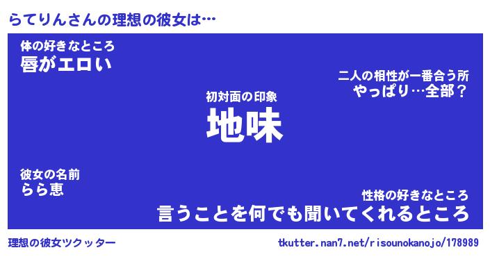 | 意味不明あだ名 | 『ペロリンらてりん』『永久保存らてりん』 |