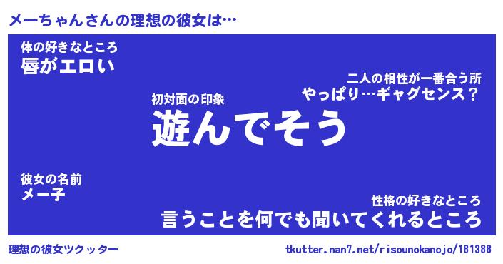 | ファンタジー風あだ名 | 『メーフェル』『エターナルメーチャンー』 |
