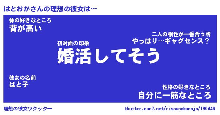 | ヘコむあだ名 | 『はとにー』『なまこ酢』『はとっぺ』 |