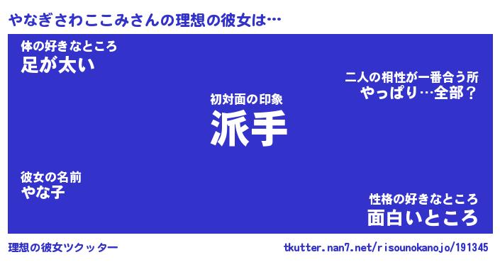 | 肩書あだ名 | 『やなぎさわここみ店長』 |