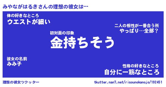 | 肩書あだ名 | 『みやながはるき御曹司』 |