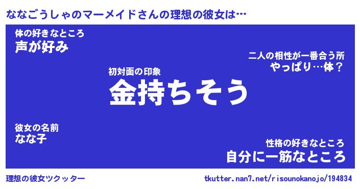 | 意味不明あだ名 | 『ペロリンななごうしゃのマーメイド』 |