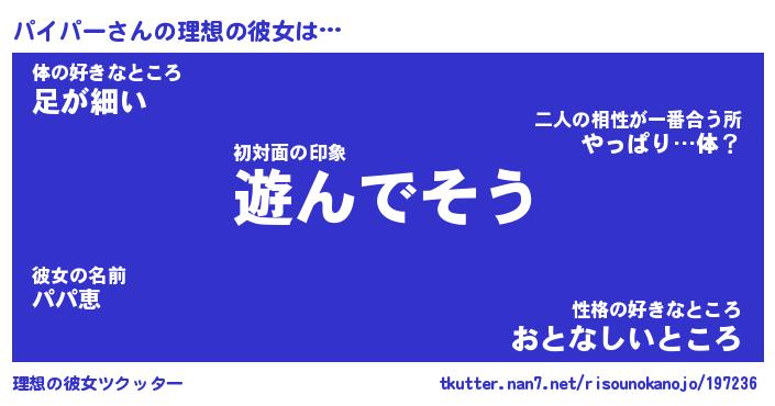 | ファンタジー風あだ名 | 『パイフェル』『エターナルパイパーー』 |