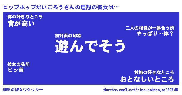 | 男性向けラノベタイトル風あだ名 | 『ヒップホップだいごろうの憂鬱』 |