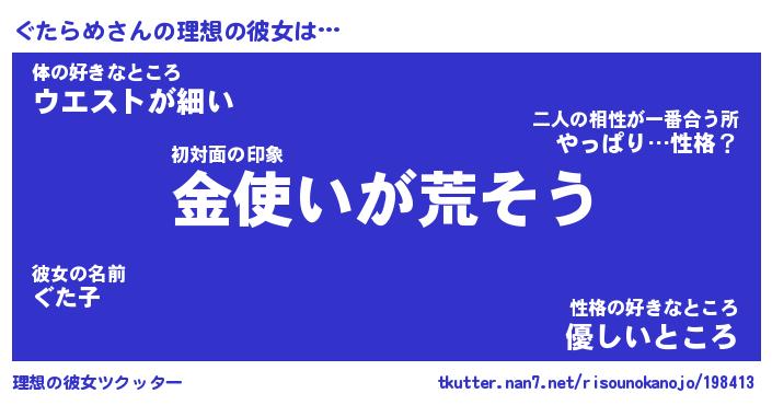 | 意味不明あだ名 | 『ペロリンぐたらめ』『永久保存ぐたらめ』 |
