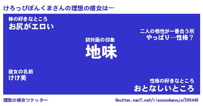 | ヘコむあだ名 | 『けろふぇ~』『つくし』 |