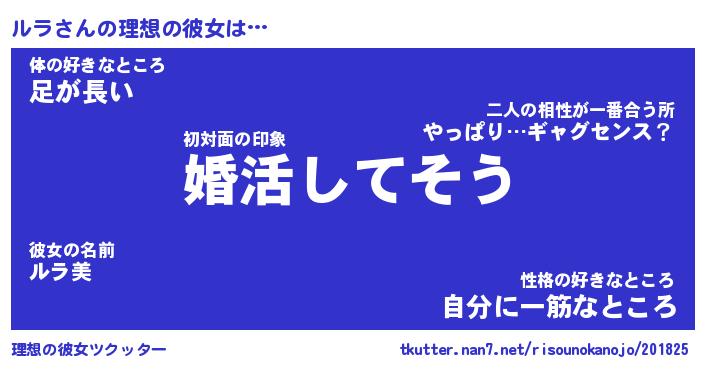 | ヘコむあだ名 | 『ルラにゅー』『豆乳』『ルラぷりん』 |