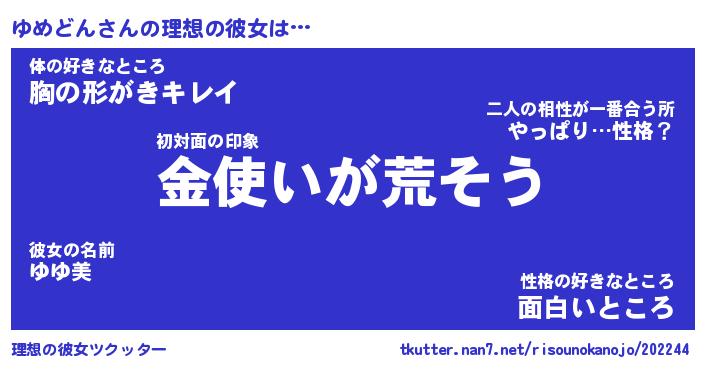 | 意味不明あだ名 | 『ペロリンゆめどん』『永久保存ゆめどん』 |