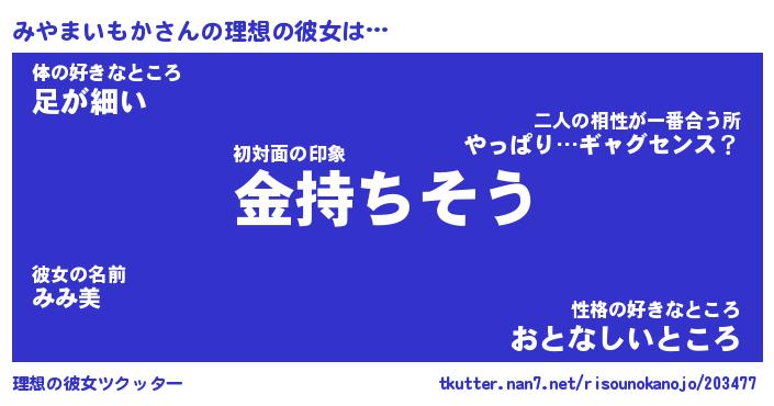 | ヘコむあだ名 | 『みやふぇ~』『レバニラ』『みやを』 |