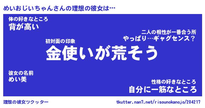 | ヘコむあだ名 | 『めいにゅー』『豆乳』『めいを』 |