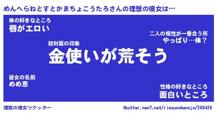 | 胡散臭い通販商品みたいなあだ名 | 『モテモテ間違いなし霊験あらたかなお札…その名も「めんへらねとすとかまちょこうたろ」』 |