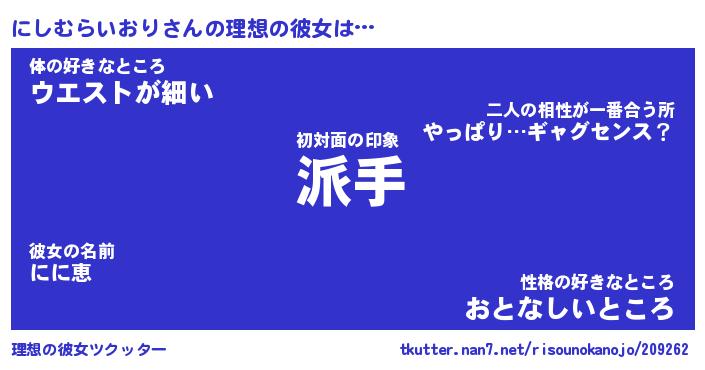 | 恥ずかしいあだ名 | 『プリティーにしむらいおり』『にしちん』 |