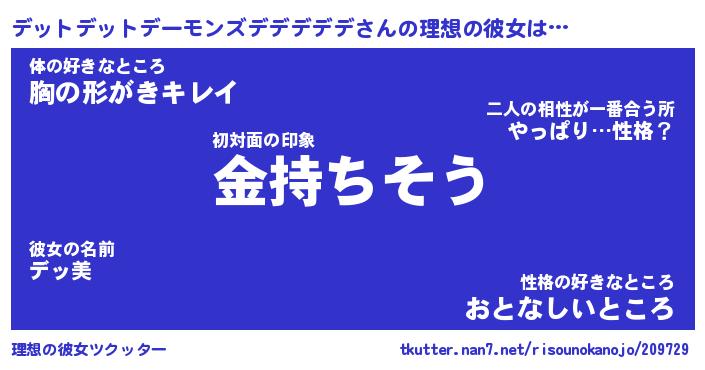 | 女子向けラノベタイトル風あだ名 | 『デットデットデーモンズデデデデデ姫と円卓の騎士』 |