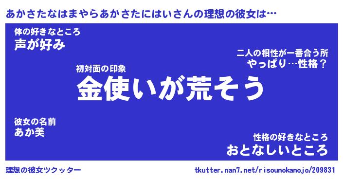 | ヘコむあだ名 | 『あかにー』『つくし』『あか太郎』 |