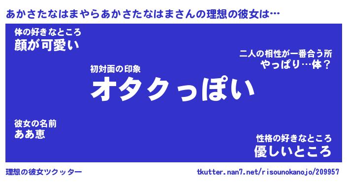 | ヘコむあだ名 | 『あかにー』『豆乳』『あか太郎』 |