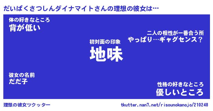 | 女子向けラノベタイトル風あだ名 | 『(仮)だいばくさつしんダイナマイトのやんごとなき事情』 |