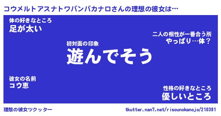 | 胡散臭い通販商品みたいなあだ名 | 『必ず成功する霊験あらたかなお札…その名も「コウメルトアスナトワバンバカナロ」』 |