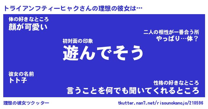 | 男性向けラノベタイトル風あだ名 | 『トライアンフティーヒャクの憂鬱』 |