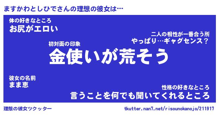 | 女子向けラノベタイトル風あだ名 | 『誰かこのますかわとしひでを説明してください! ~契約から始まるウェディング~』 |