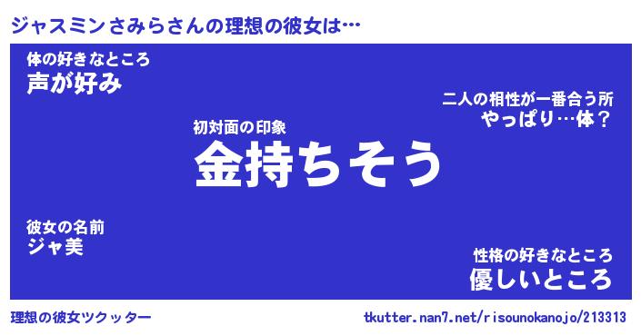 | 欧米人風あだ名 | 『マイケルジャスミンさみら』 |