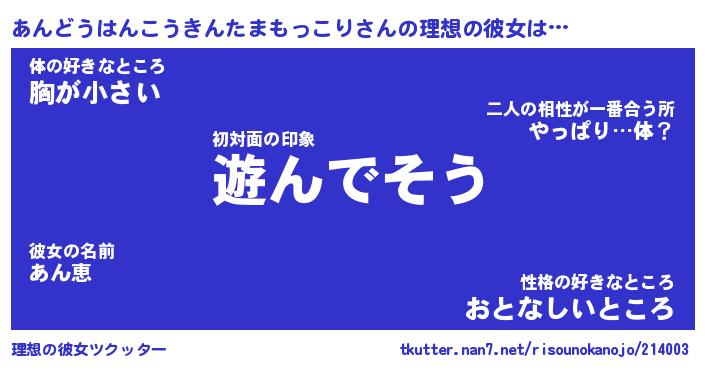 | 肩書あだ名 | 『あんどうはんこうきんたまもっこり店長』 |