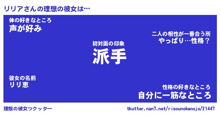 | ファンタジー風あだ名 | 『リリフェル』『エターナルリリアー』 |