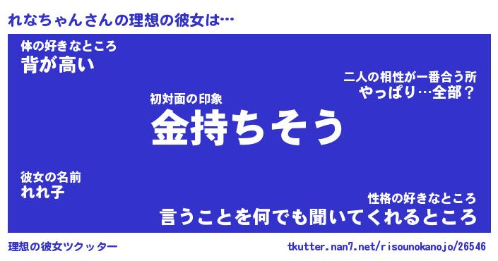 | ヘコむあだ名 | 『れなっふぃ~』『なまこ酢』 |