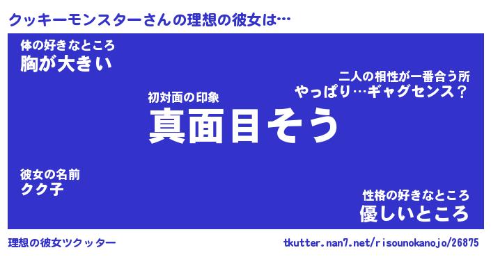| 男性向けラノベタイトル風あだ名 | 『クッキーモンスターの憂鬱』 |