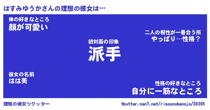 | 恥ずかしいあだ名 | 『プリティーはすみゆうか』『はすっちょ』 |