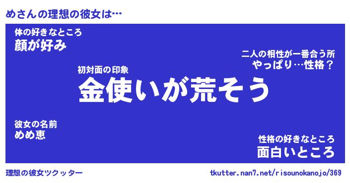 | ヘコむあだ名 | 『めっふぃ~』『つくし』『めっぺ』 |