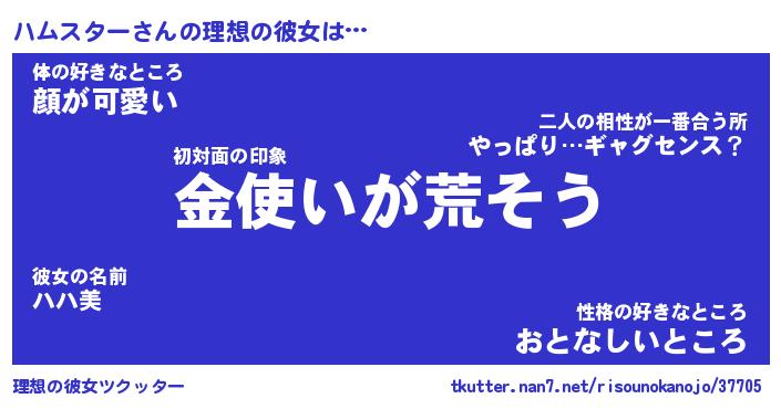 | ファンタジー風あだ名 | 『ハムフェル』『エターナルハムスターー』 |