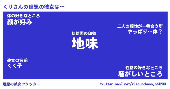 | ヘコむあだ名 | 『くりにー』『レバニラ』『くりっぺ』 |