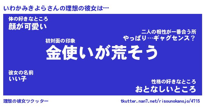 | ヘコむあだ名 | 『いわもー』『つくし』『いわっ子』 |