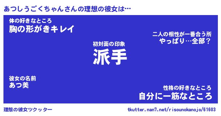| 男性向けラノベタイトル風あだ名 | 『あつしうごくちゃんの憂鬱』 |