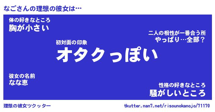 | ヘコむあだ名 | 『なごにー』『牛乳』『なごっちょ』 |