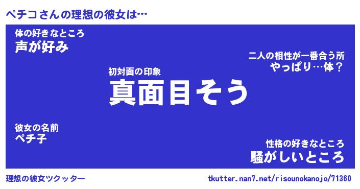 | ヘコむあだ名 | 『ペチにゅー』『豆乳』『ペチぷりん』 |