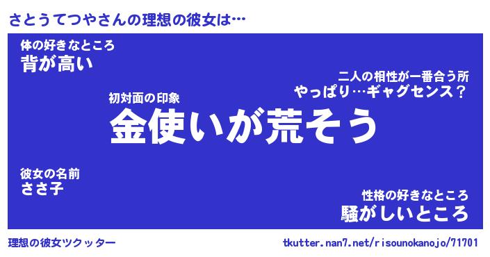 | 肩書あだ名 | 『さとうてつや御曹司』 |