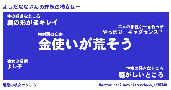 | 肩書あだ名 | 『よしだなな御曹司』『よしだなな塾長』 |