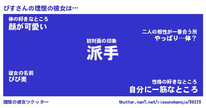 | ヘコむあだ名 | 『びすにー』『なまこ酢』『びすを』 |