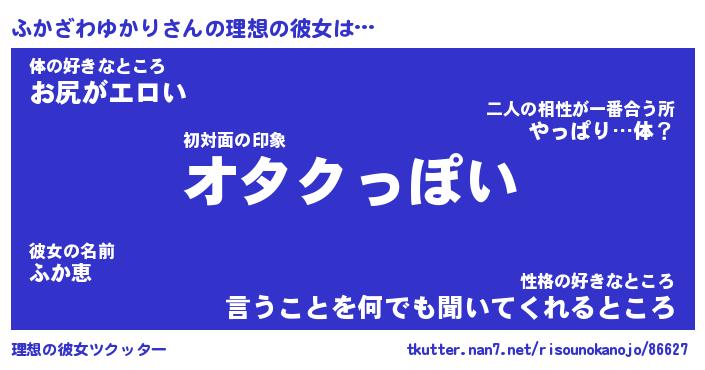 | 男性向けラノベタイトル風あだ名 | 『フカザワユカリアートオンライン』 |