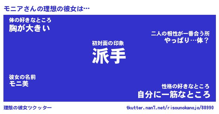 | ファンタジー風あだ名 | 『モニフェル』『エターナルモニアー』 |