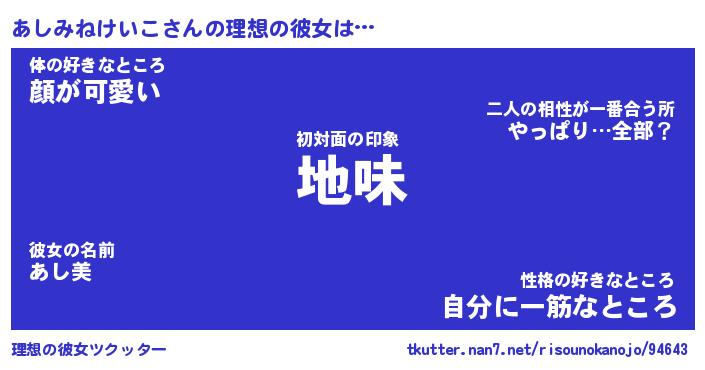| 女子向けラノベタイトル風あだ名 | 『(仮)あしみねけいこのやんごとなき事情』 |