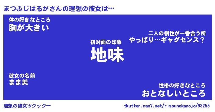 | 恥ずかしいあだ名 | 『プリティーまつふじはるか』『まつちん』 |