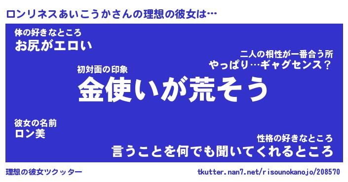 | 胡散臭い通販商品みたいなあだ名 | 『億万長者になれるブレスレット…その名も「ロンリネスあいこうか」』 |