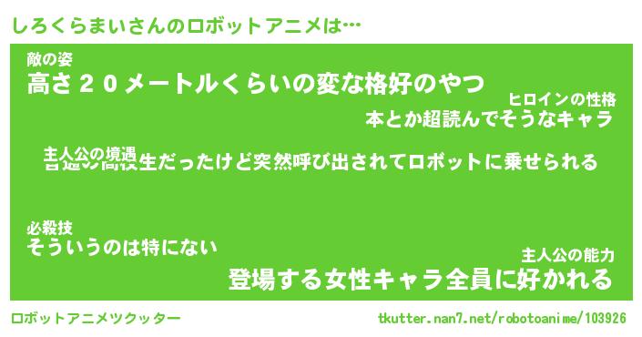 | 男性向けラノベタイトル風あだ名 | 『しろくらまいの憂鬱』 |