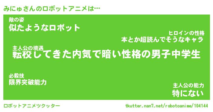 | 男性向けラノベタイトル風あだ名 | 『みにゅの憂鬱』 |