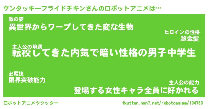 | 男性向けラノベタイトル風あだ名 | 『ケンタッキーフライドチキンの憂鬱』 |