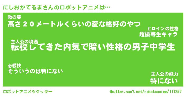 | 男性向けラノベタイトル風あだ名 | 『にしおかてるまの憂鬱』 |